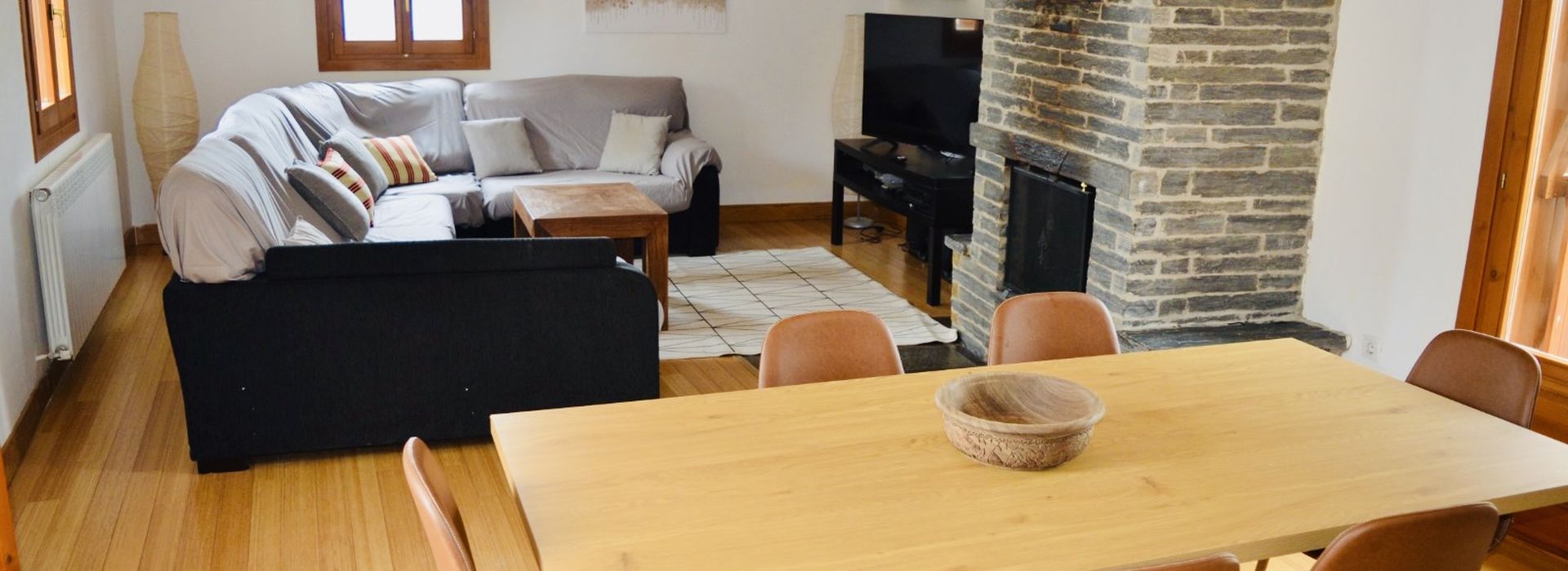 Situada en un pintoresco pueblo de montaña a 945 m de altitud, este alojamiento es perfecto tanto para escapadas familiares como para grupos de amigos que buscan explorar la Jacetania y sus alrededores —desde rutas de senderismo hasta monumentos románicos y estaciones de esquí cercanas.